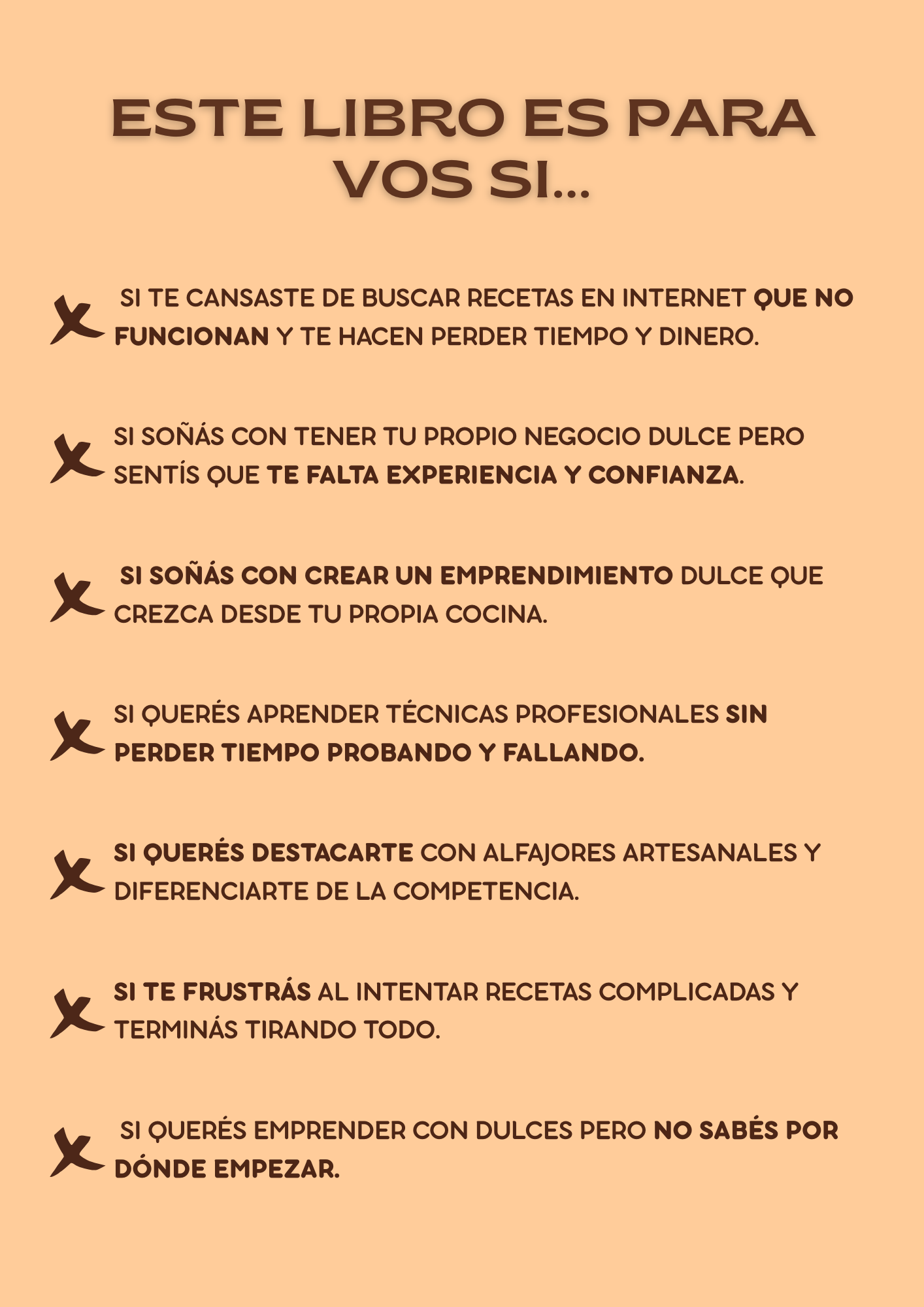"Nunca pensé que podía hacer alfajores tan ricos. El ebook es súper claro y en 3 días ya estaba vendiendo. ¡Increíble inversión!"